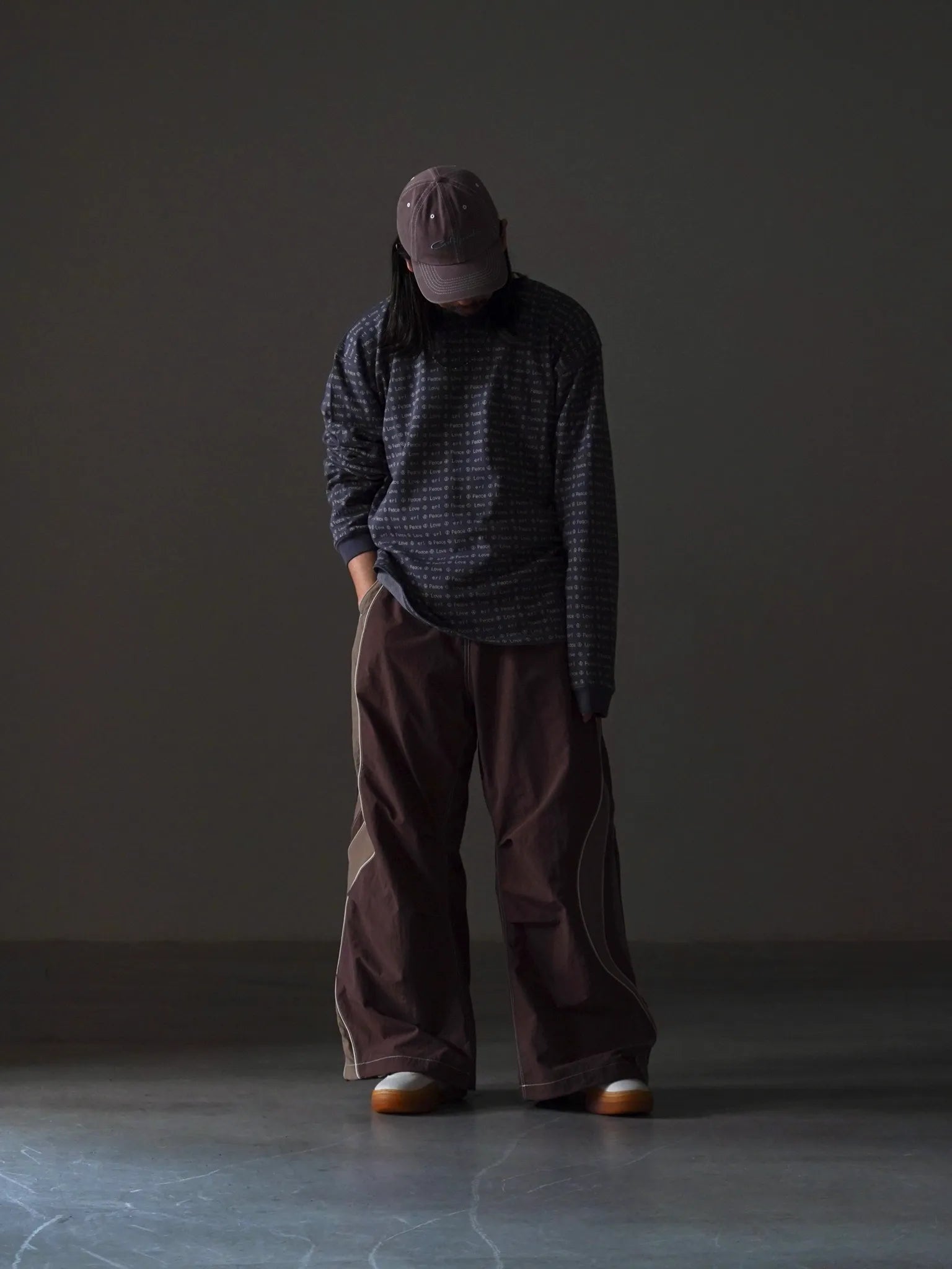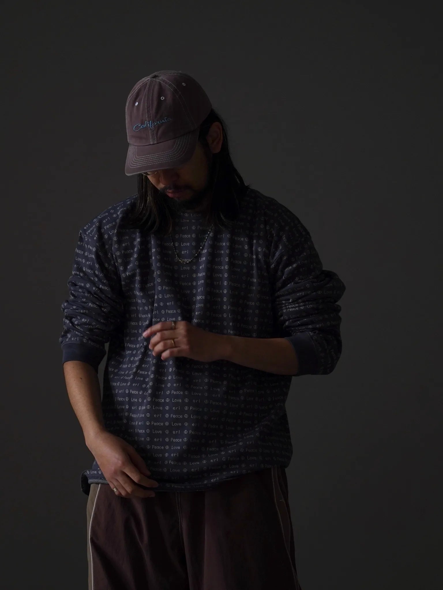 ERL JACQUARD LONG SLEEVE TEE BROWN